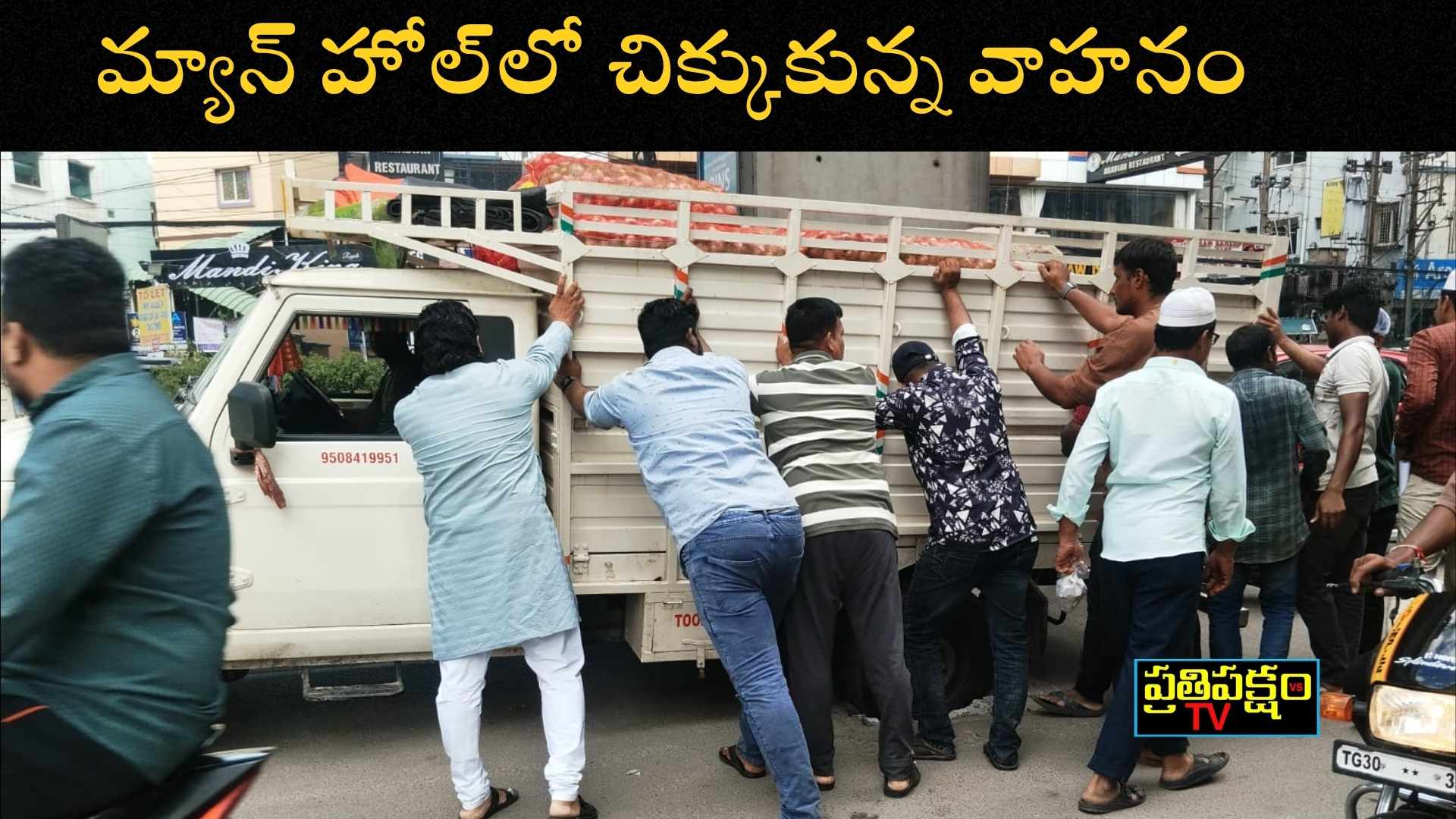 పంజాగుట్ట మెట్రో పిలర్ నంబర్ 1116 వద్ద సరుకు వాహనం రోడ్డుపై వెళ్తుండగా ఆకస్మికంగా ఆగిపోయింది. దగ్గరగా వెళ్లి చూసినప్పుడు వాహనం వెనుక చక్రం పూర్తిగా మాన్హోల్లో దిగిపోయిందని తెలిసింది. మాన్హోల్ కవర్ బలహీనంగా ఉండటంతో చక్రం లోపల ఇరుక్కుపోయింది. ఫలితంగా వాహనం కదలకుండా నిలిచిపోయింది.